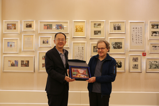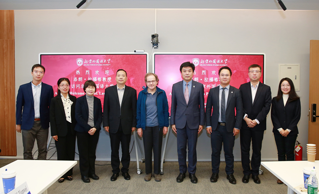 北外校长、党委副书记贾文键,党委常委、副校长赵刚会见了拉福格一行。贾文键祝贺拉福格获得中国政府友谊奖,赞赏他在数学研究与国际科研合作方面作出的卓越贡献。双方就中法人工智能发展,文化差异的挑战等问题进行了深入探讨。赵刚表示,拉福格此次来访具有重要意义,希望未来北外能够在人工智能相关研究中得到更专业的指导与支持。拉福格感谢北外的热情接待,并对北外人工智能与人类语言的前沿研究给予高度评价。他表示,北外是他本次到访的首个文科类高校,在人才培养和跨学科融合发展方面取得的丰硕成绩让他印象深刻。