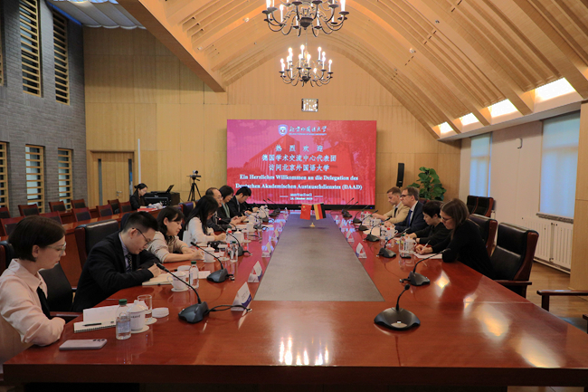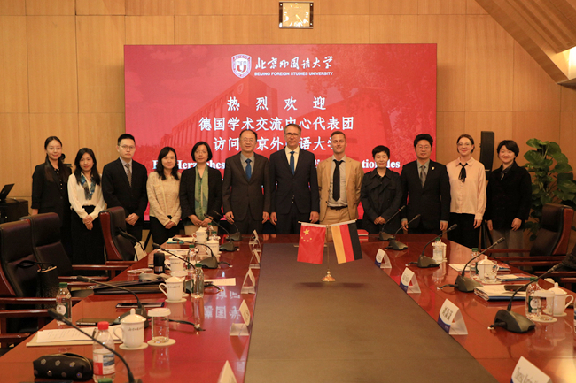 10月14日,德国学术交流中心(DAAD)秘书长凯·西克斯(Kai Sicks)一行访问北京外国语大学,北外校长、党委副书记贾文键会见代表团一行。