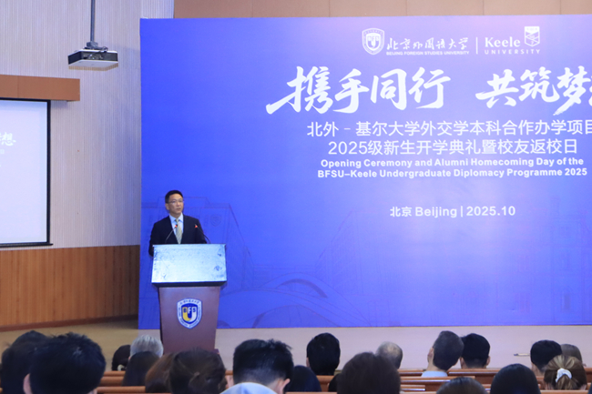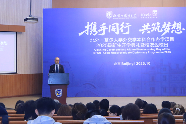 10月19日,北外-基尔外交学本科合作办学项目新生开学典礼暨校友返校日活动。北外党委常委、副校长赵刚,英国基尔大学副校长唐娜・李(Donna Lee),基尔大学代表团成员,北外职能部门代表,北外-基尔外交学本科合作办学项目新生以及返校校友等百余人参加活动。