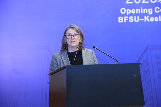 唐娜・李代表基尔大学欢迎项目2025级新生的到来。她表示,基尔大学致力于培养具有批判性思维和创造力的领导者,而北外-基尔外交学本科合作办学项目正是践行这一教育理念的最佳典范。她介绍了基尔大学在政治学与国际关系学科方面的研究与教学优势,鼓励同学们在北外三年、基尔大学一年的学习中保持好奇心与开放性,并期待两校伙伴关系能够结出更为丰硕的果实。