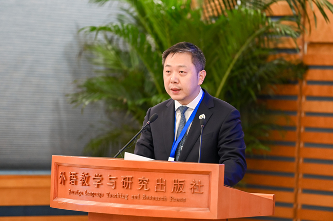 刘欣路在致辞中回顾了海峡两岸外语教学研讨会的创办历程,介绍了北外在语言学科建设、国际化办学等方面取得的显著成就,并强调了本届研讨会主题的重要性和及时性。他表示,在当今数字化、智能化飞速发展的时代,外语教育正面临着前所未有的机遇与挑战。人工智能、大数据、虚拟现实等新兴技术的涌现,为我们提供了全新的教学手段和学习方式,也为外语教育的创新发展带来了新的时代契机。如何在数智时代背景下,推动外语教学的转型升级,培养适应新时代需求的外语人才,是我们两岸外语教育工作者共同面临的课题。
