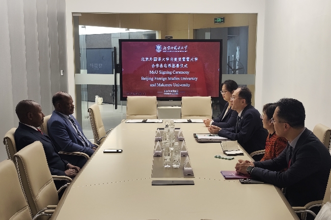10月23日,北京外国语大学校长、党委副书记贾文键会见乌干达麦克雷雷大学校长巴纳巴斯・纳旺韦(Barnabas Nawangwe)。两校代表签署了合作谅解备忘录。