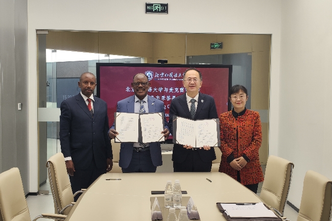 随后,贾文键和纳旺韦分别代表两校签署了《北京外国语大学与麦克雷雷大学合作谅解备忘录》。