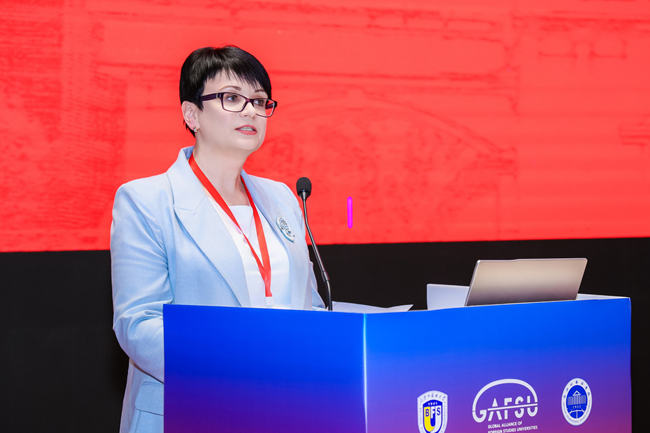 白俄罗斯国立语言大学副校长奥尔加·卢辛斯卡娅在致辞中表示,全球外国语大学联盟是促进学术对话与科研合作的重要平台,为与会成员提供了交流前沿理念、分享实践经验的平台。期待与会成员深入研讨,推动联合项目落地,不断达成新的共识。