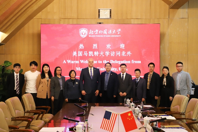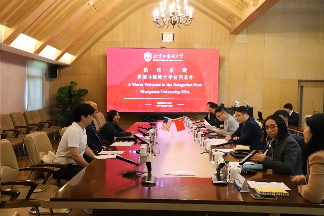 马凯特大学国际教育研究与交流中心主任韩静、国际生招生官王晓野,北外教育学院常务副院长苑大勇、国际交流与合作处副处长龚婧、外语教学与研究出版社副社长王勇等参加会见。