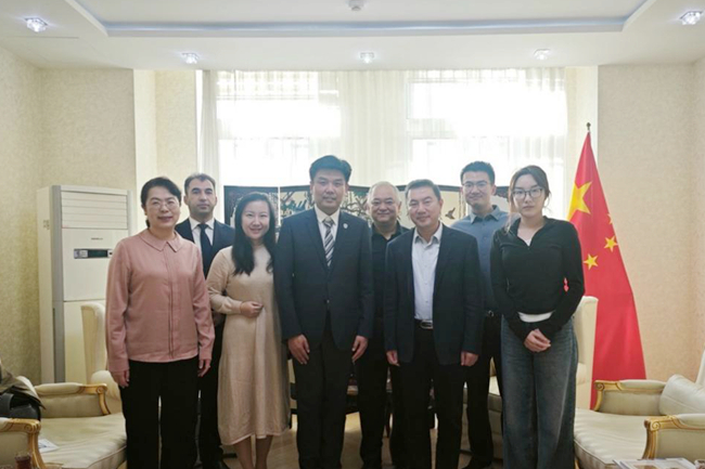 10月31日下午,代表团拜访中国驻阿塞拜疆大使馆,公使衔参赞丁涛会见了北外代表团。丁涛详细介绍了中阿两国关系发展的现状。他特别指出,今年四月《中华人民共和国和阿塞拜疆共和国关于建立全面战略伙伴关系的联合声明》签署后,中阿双边关系达到历史新高。赵刚感谢使馆长期以来对北外的支持,并介绍了北外在阿塞拜疆语专业建设方面取得的最新进展。