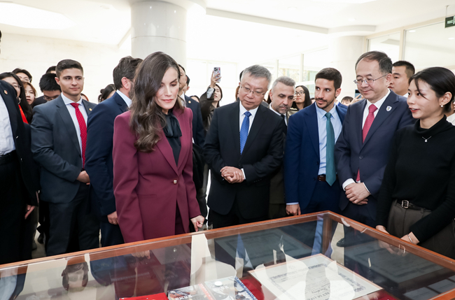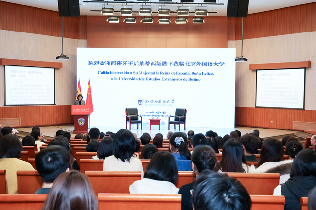 11月13日,西班牙王后莱蒂西娅访问北京外国语大学。中国教育部党组成员、副部长任友群,国际合作与交流司司长杨丹,北外党委书记王定华,党委副书记、校长贾文键,党委常委、副校长赵刚出席活动。来自北外西班牙语葡萄牙语学院、国际关系学院、教育学院以及在京其他高校的300余名西班牙语专业师生参加活动。