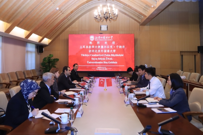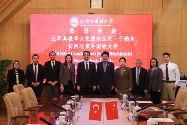 11月17日,土耳其驻华大使塞尔丘克·于纳尔访问北京外国语大学。北外党委常委、副校长赵刚会见于纳尔一行。
