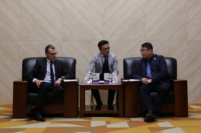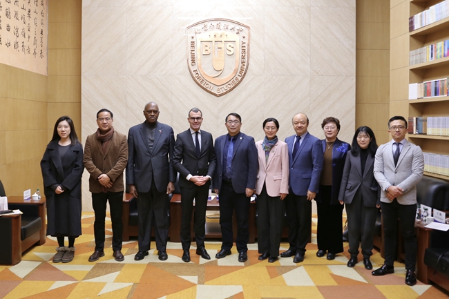 11月26日,卢森堡驻华大使卢睿朗(Roland REILAND)、中非驻华使馆代办布万巴(PERKS BUWAMBA Wilfrid Emery)访问北京外国语大学。北外党委常委、副校长丁浩会见代表团一行。