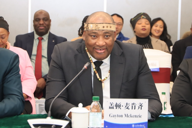 麦肯齐对北外的热情接待表示诚挚感谢,对北外学子优秀的语言沟通与文化理解能力表示高度赞赏,对北外矢志不渝推动青年交流、学术对话、文明互鉴的努力表示由衷钦佩。他希望以本次交流访问为契机,推动南非各界与北外开展更高水平、更深层次合作,助力中南两国在多领域的对话交往,携手构建更加包容、互惠、可持续的中南教育合作生态。