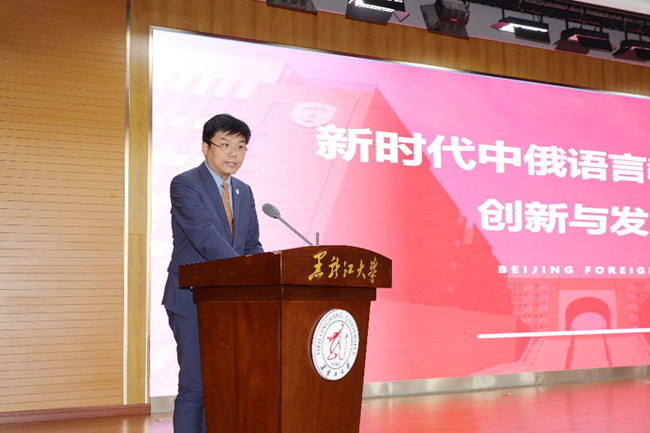 赵刚以“新时代中俄语言教育合作创新与发展”为题,从三个方面阐述了北外推动语言教育变革与深化中俄教育合作的实践路径与思考。一是以交叉融合为引领,构建“语言+”人才培养体系,打造俄语+大数据管理与应用等复合型专业,俄语+中亚五国语言等复语型专业,通过体系化语种布局与系统的语言教学与区域研究,培养精通语言、熟悉国情、具备国际视野的高层次人才。二是以数智技术为驱动,打造未来语言教育的新范式,依托人工智能与人类语言重点实验室、中国高校外语慕课联盟、国家全球语言服务平台和上合组织国家数字教育联盟等国内国际合作平台,推动数字教育资源共建与共享,筑牢区域教育合作的数字基石。三是以文明互鉴为根本,提升文化阐释力与国际传播能力,通过“中华思想文化术语工程”“理解当代中国”“多语种讲中国”等精品项目、教材及多语种国际期刊建设,增强了语言教育对国家战略的支撑能力。
