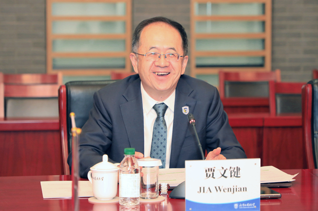 贾文键对沙克谢夫、拉古班西再次访问北外表示欢迎。他回顾了两校深厚的合作渊源,介绍了北外在人才培养、学科建设、教学科研等领域取得的最新发展成果,并指出,北外与基尔大学合作已有十年之久,愿以现有的外交学本科及教育技术与人工智能硕士合作办学项目为抓手,进一步开拓合作领域,推动两校交流走深走实。