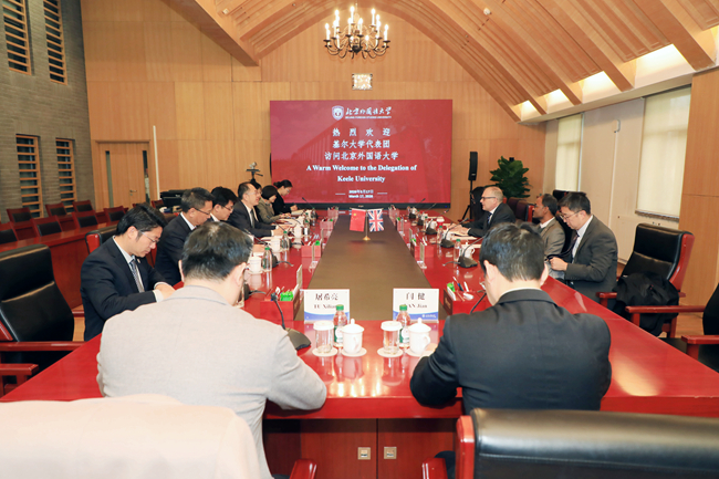 3月17日,英国基尔大学校长凯文·沙克谢夫(Kevin Shakesheff)、副校长安东尼厄斯·拉古班西(Antonius Raghubansie)访问北京外国语大学。北外校长、党委副书记贾文键,党委常委、副校长赵刚会见沙克谢夫一行。