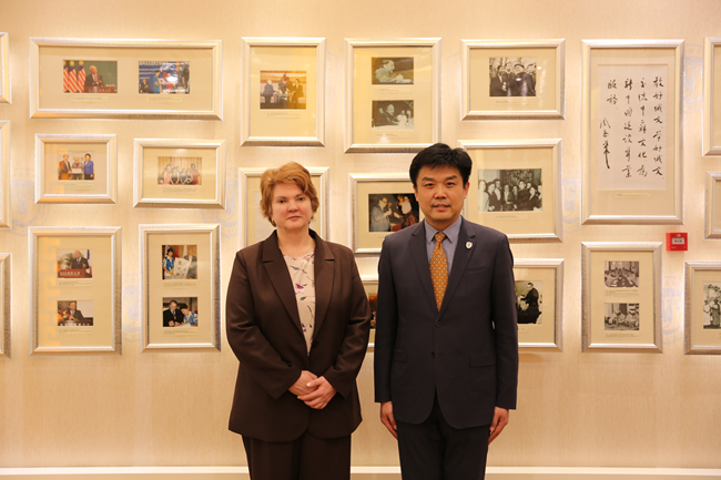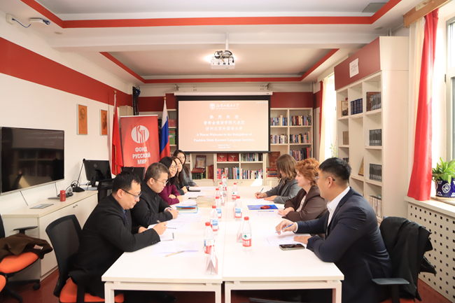 俄罗斯普希金俄语学院国际处代表、北外国际交流与合作处相关同志参加会见。
