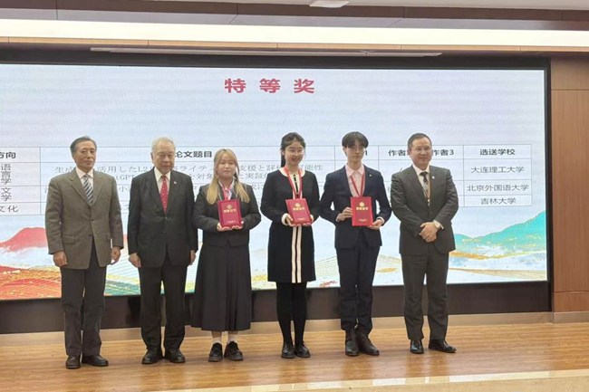 11月2日,“2025年笹川杯日本研究论文大赛”决赛及颁奖仪式在吉林大学举行。北京外国语大学日语学院共有5组选手进入决赛,其中2024级唐家浩、徐子牧以西方理论与日本特殊性相结合的创新视角和出色的临场答辩获得专家评委一致认可,荣获文学组特等奖;2022级汪皓楠、张淑正荣获文化组一等奖;2023级陈思宇、陈润泽、方正儿荣获文化组二等奖;2022级胡新悦荣获文学组三等奖;2023级王鲁蓁荣获语言学组三等奖。