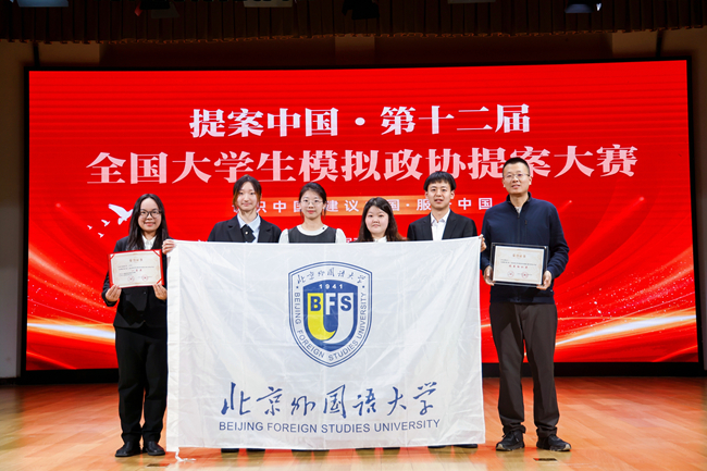 12月5日至7日,“提案中国・第十二届全国大学生模拟政协提案大赛”在北京举行。本届大赛由外交学院、北京市人民政协理论与实践研究会联合主办,北京市教工委、全国政协机关团委指导,吸引全国近100所大、中学校超过400名选手参赛。北京外国语大学代表队凭借《关于优化中轴线景区外语标识系统的提案》荣获大赛一等奖(最高奖项),北外获评“优秀组织奖”。